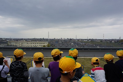 社会科の学習で、屋上に上がって自分たちの住んでいる町の様子を調べることが目的です。