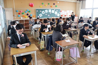 歌の練習をした後に、教室へ戻りおうちの方から預かった手紙を読みました。おうちの方の思いを受け止め、入場の準備をしました。