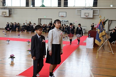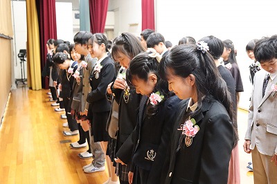 校長先生の祝辞や保護者代表のあいさつでは、みなさんのこの小学校6年間を振り返って、気持ちを一つにして盛り上がった運動会や、協力して最高の行事となった修学旅行でのみんなの頑張りについて話をしていただきました。その話を聞いている先生たちも、みんなの頑張りを改めて感じ取るとこができ、今の成長した姿とを照らし合わせ、とても感動しました。