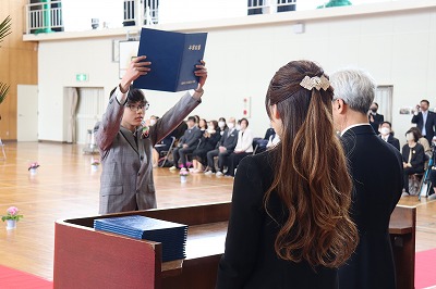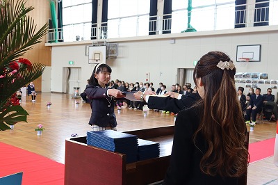 入場する姿もとても堂々としていて、素晴らしい卒業式になるだろうと感じました。その流れのまま、凛々しい姿で卒業証書を受け取っていました。