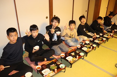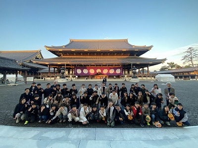 起床後すぐに、旅館の目の前にある東本願寺へ散歩に行き、そのあとおいしい朝ごはんをみんなで食べました。