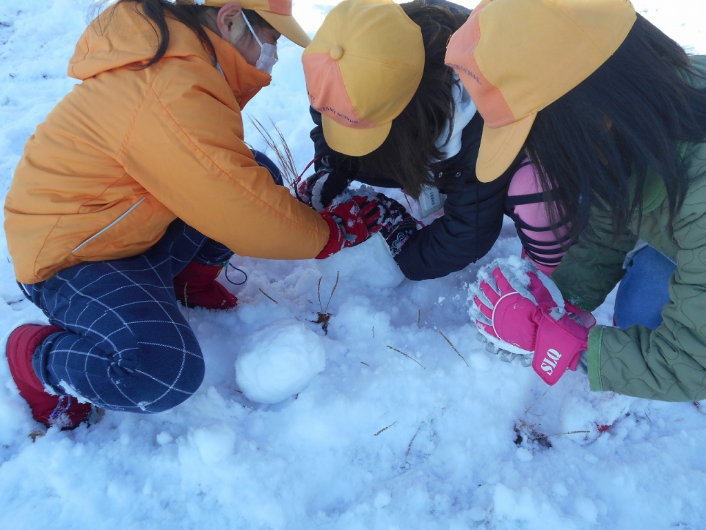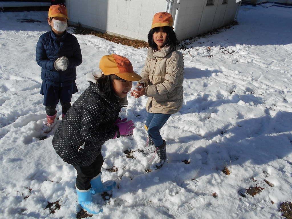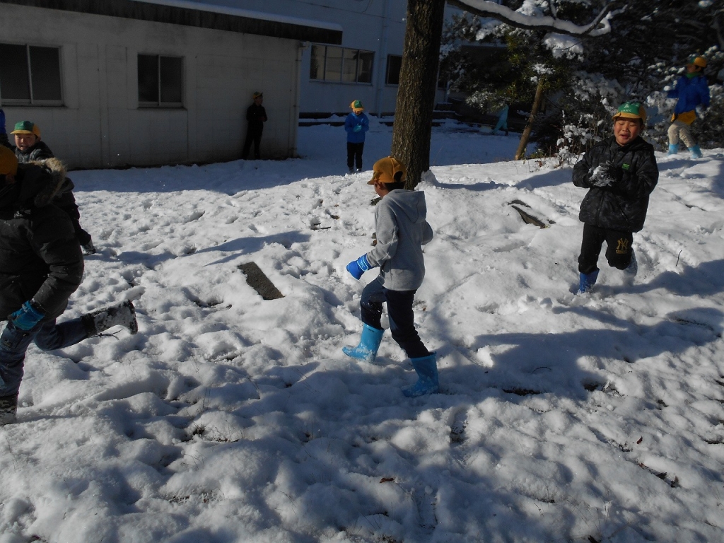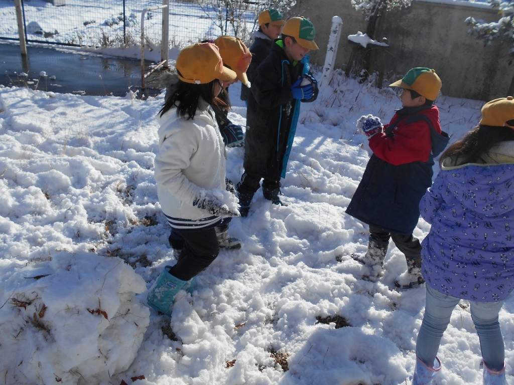 雪できれいな玉をつくったり、雪合戦をしたりしていました。