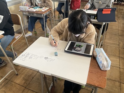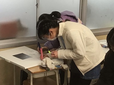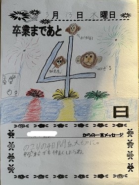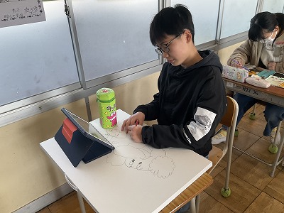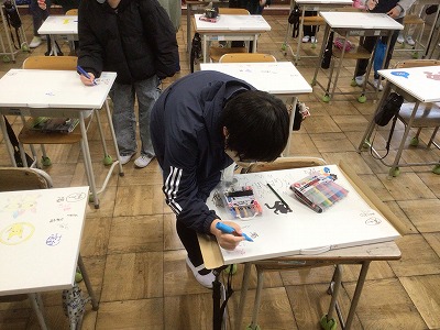 作品バッグに自分の好きな絵を描いたり、お互いにサインをし合ったりしている様子を紹介します。卒業を目前に、とても穏やかな雰囲気でいいなと思いました。