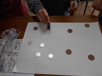 1円玉と10円玉はつきませんでした。アルミニウムと銅は磁石につかないことが