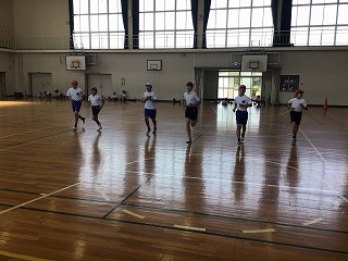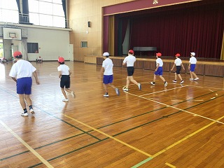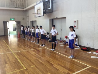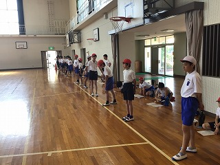 朝の会の前に計測方法を確認し、いざ体育館へ。