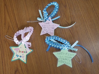 リボン編みのストラップに、感謝のメッセージをつけて、プレゼント。