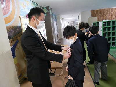 市井先生と小竹先生より、コサージュを胸に