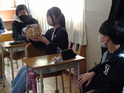 6年生も大谷翔平選手からいただいたグローブを一人ずつ順番に触ったり、手にはめたりしました。