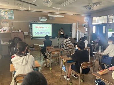 小学校生活最後の発育測定と保健指導がありました。6年間を振り返って、この6年間で「何回まばたきをしたか」「何回歯磨きをしたか」「髪の毛はどれくらい伸びたか」などから始まり