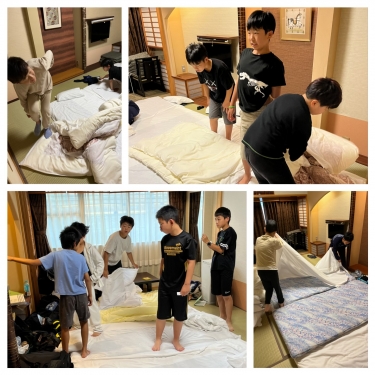 子どもたちは眠い目をこすりながらふとんの片付けをしたり、朝の支度をしたりしていました。