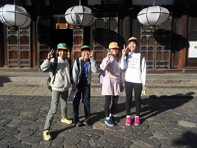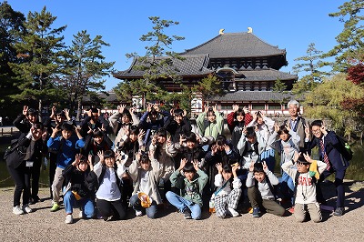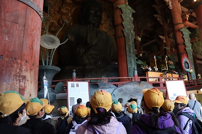 東大寺では、鏡池付近で写真を撮り、大きな大きな大仏を、説明を聞きながら見学しました。希望する子は、大仏の鼻の穴と同じ大きさの穴をくぐりました。