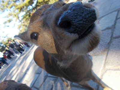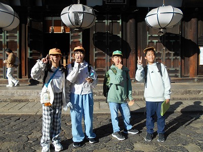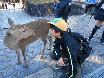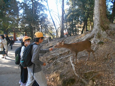 大仏殿の見学が終わると、奈良公園内を班ごとに散策しました。鹿に少し驚きながらも、楽しそうに散策をしていました。