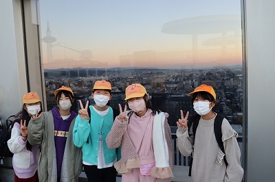京都駅に向かい、京都タワーや京都の街並みを高い位置から見ることができました。イルミネーションがとてもきれいでしたね!