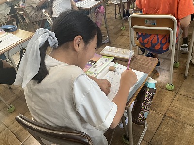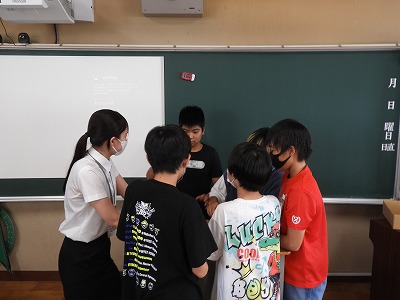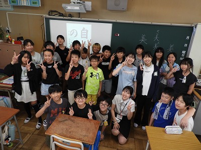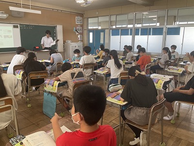 1組は生活の様子を紹介します。昨日、学校体験活動として将来先生になりたいと強く希望をしている大学生が1日一緒にみんなと生活をしました。たくさん遊んだり、外国語の授業では、スピーチを聞いてもらったりもしました。とても楽しい1日になりましたね!
