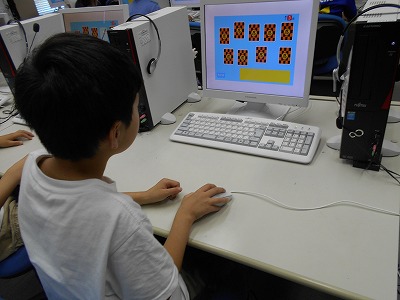 1時間目は、コンピュータ室の使い方や、起動の仕方、マウスを使った練習、
