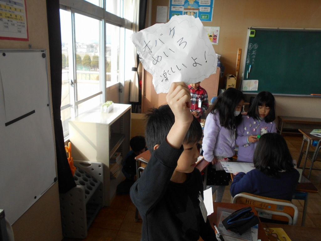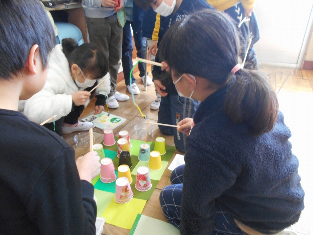 完成したおもちゃで遊びました。招待するグループと遊ぶグループに分かれて行いました。