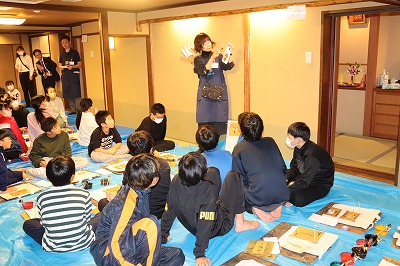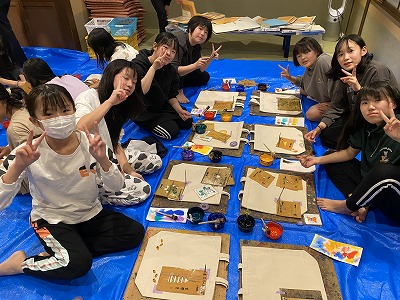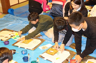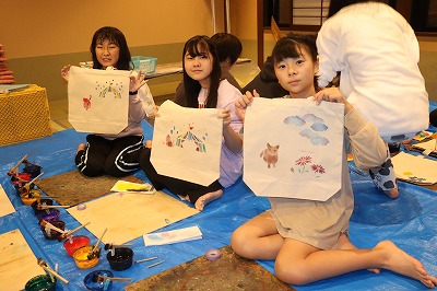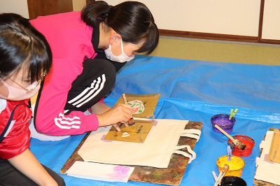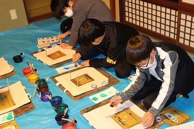 1日目の最後は、京都友禅染めの体験をしました。みんなとても楽しそうに、オリジナルトートバッグを作っていました。