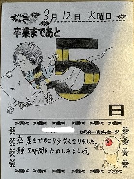 今日は、卒業式の総練習を行いました。来年のためにも、5年生が様子を見学しにきました。まだ改善点はありますが、最高学年としての凛々しい姿を見ることができました。
