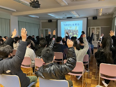 5時間目は中学校説明会があり、3人の先生方から学習・生活・部活動についてたくさんのお話を聞くことができました。