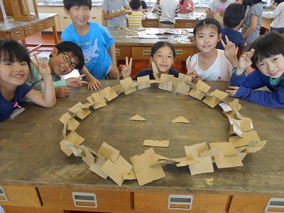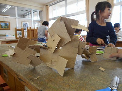 きれいにつなげたね。 顔の表情も段ボールを使って表現しました。