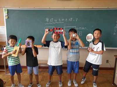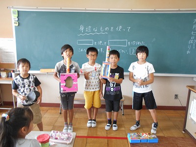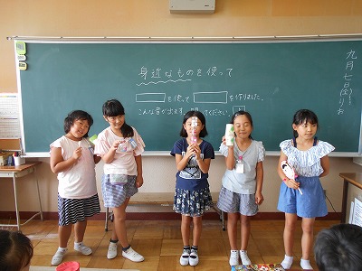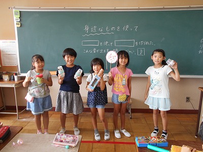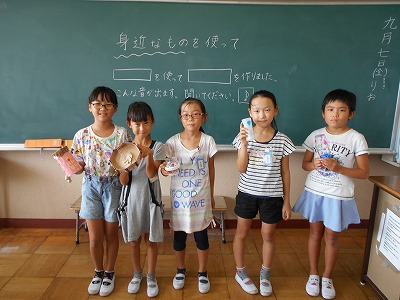どの子も身近な材料で、すてきな手作り楽器ができましたね。