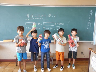 ティッシュペーパーの箱やカップラーメンの入れ物、ラップの芯などを使って作ってきた