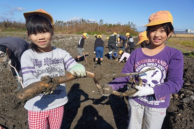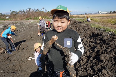 れんこんを折らずに、傷をつけずに掘ることの難しさを実感していました。