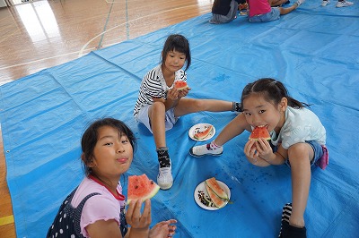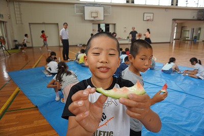 自分たちで育てたスイカのおいしさに感動している様子でした。