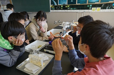 理科の学習では、水溶液の性質を調べる実験を行いました。