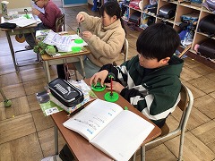 理科の授業では、磁石の性質について調べています。どんなものにつくのか調べたり、磁石のN極・S極についても調べたりしています。実験の中で新たな発見があるといいですね。