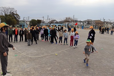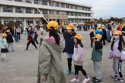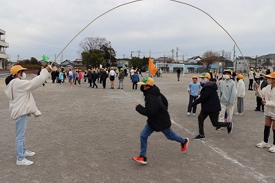 昨日からロングジャンプロープ大会の練習が始まりました。6年生を中心にわくわく班に分かれて活動しています。