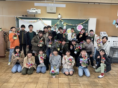 「6年生を送る会」がありました。各学年、一生懸命練習した歌やダンス、クイズをみんなのために発表してくれました。