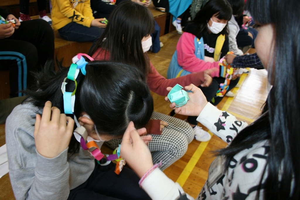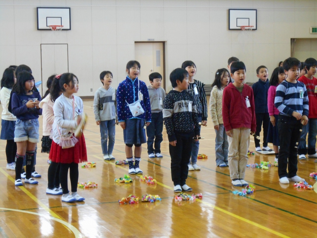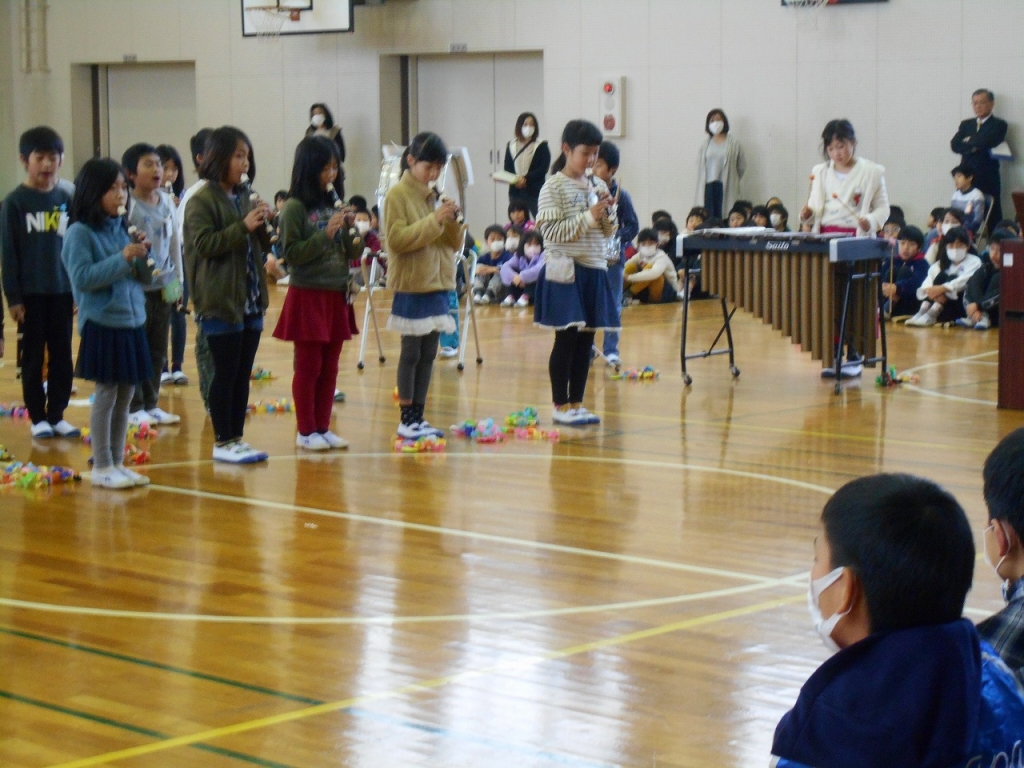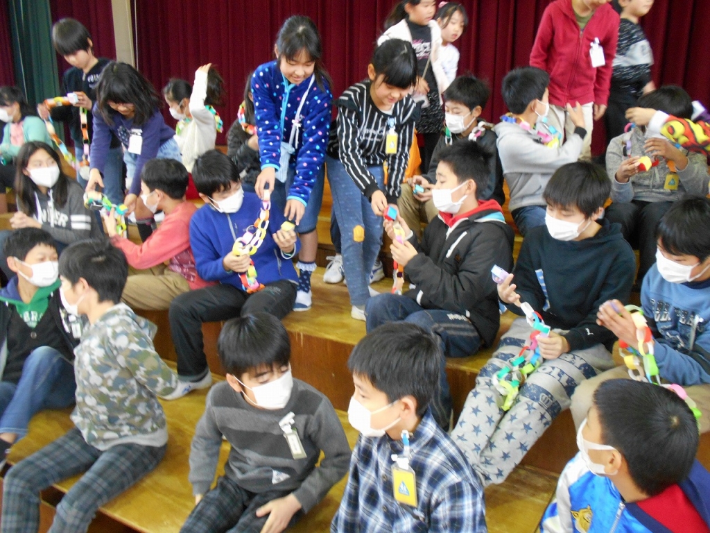 休み時間やわくわくの時間、通学班など、さまざまな場面でお世話になった6年生へ感謝の気持ちを込めた出し物をしました。