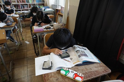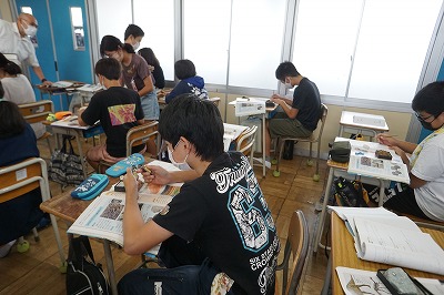 理科の学習では、れき・砂・泥からできた岩石の観察を行いました。