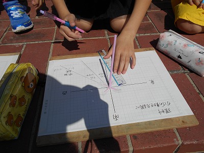 午前9時半から午後2時半まで1時間ごとにかげの記録をとりました。
