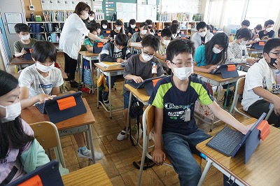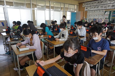 ICT支援員さんに来ていただいて、keynoteを使って、アニメーション作りに取り組んでいます。