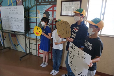 先週、児童会役員が企画をして、あいさつ運動を行いました。