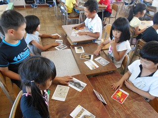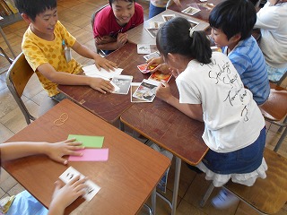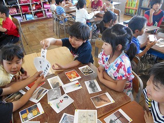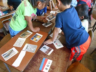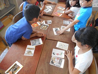 6時間目に、愛知県美術館から頂いた鑑賞学習補助ツール「あいPackプラス」を使って、芸術作品に親しみました。