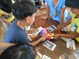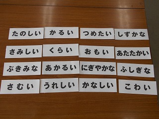 感じカードで、「あつい」「さむい」といった反対の意味の言葉が出て、迷っている子たちもいました。