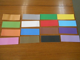 色カード2枚、感じカード1枚や色カード1枚、感じカード2枚を選び、それに合った作品を考えました。