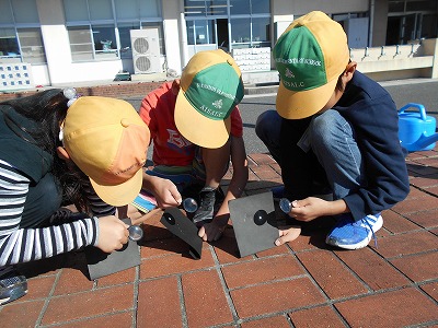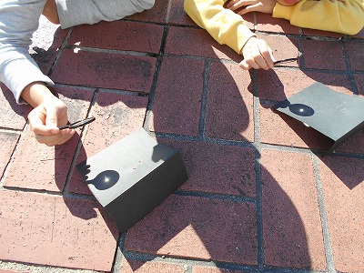 虫めがねで日光を集めて、紙をこがすことができるかという実験をしました。