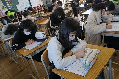まずは、集中して自分の力で問題に取り組んでいます。