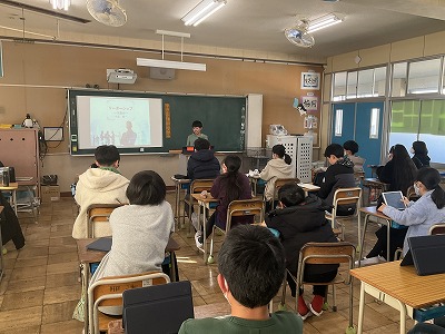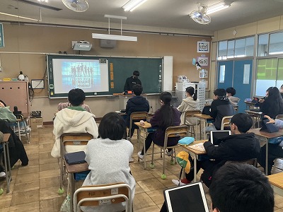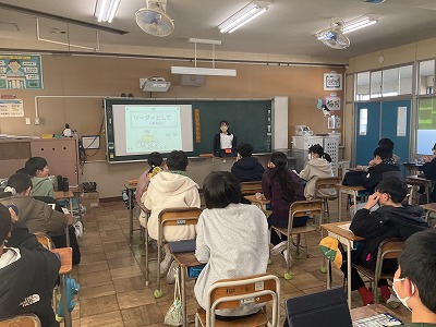 2組は総合的な学習の様子を紹介します。これまで発揮してきたリーダーシップについてまとめたものを発表しました。