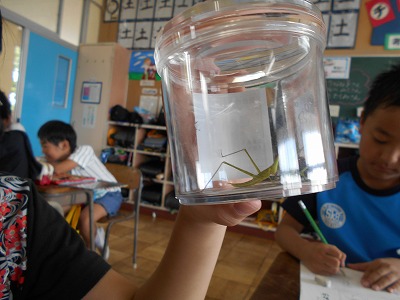 今日は、バッタとトンボをつかまえて観察しました。