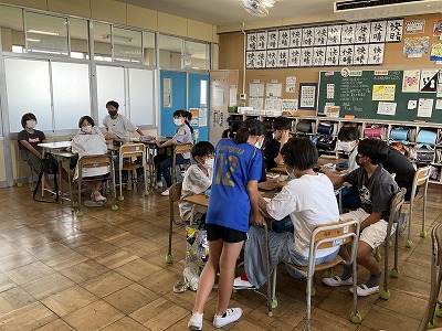 2組はお楽しみ会の準備の様子を紹介します。2チーム合同でそれぞれ遊びの企画を立てています。目隠し迷路や絵しりとり、写真で一言など楽しい企画を考えてくれています。