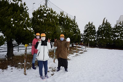 今日は、みんなで雪遊びをしました。
