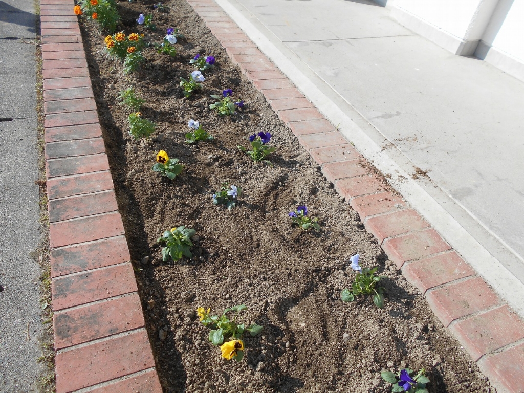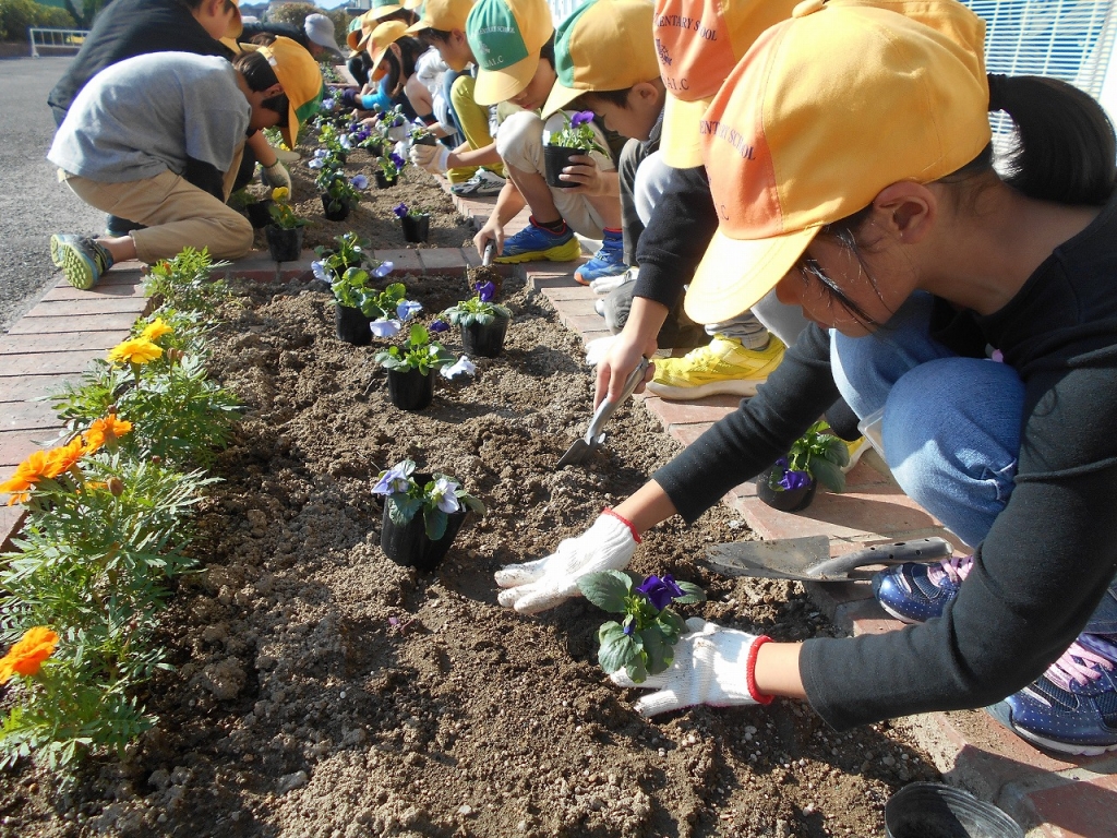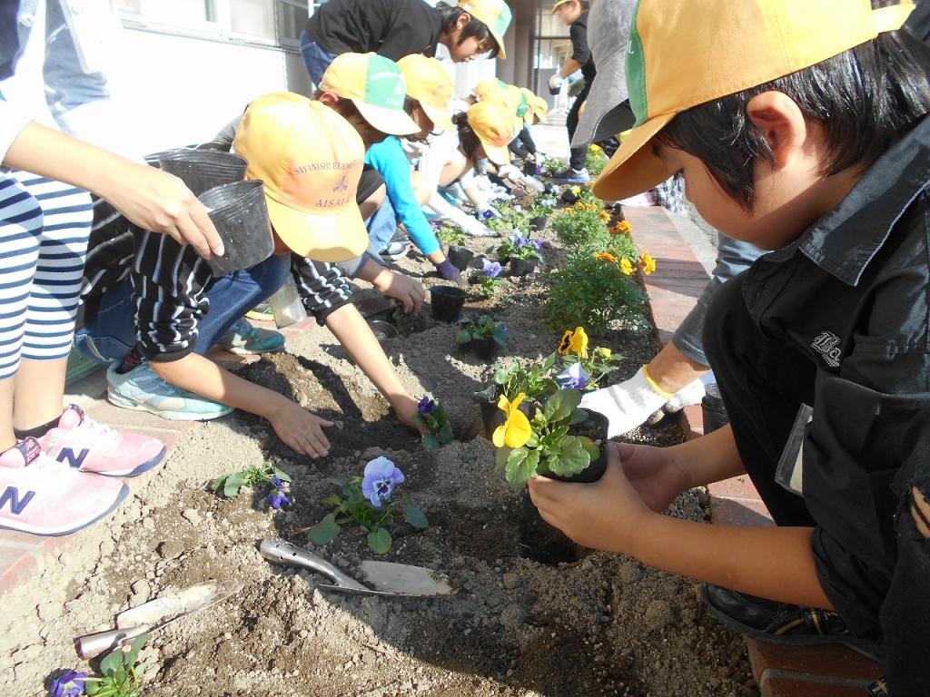 ポットから花壇への植え替えをていねいに行いました。