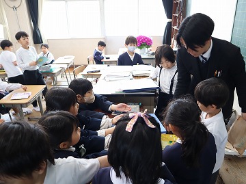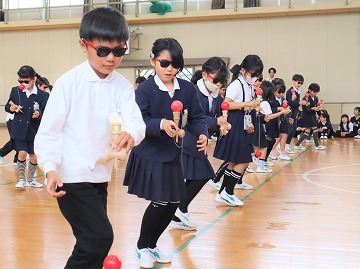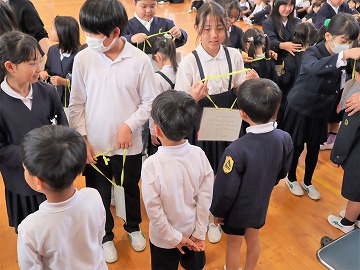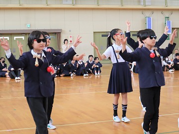 4年生がけん玉ダンス、5年生からはメッセージの首飾りのプレゼント