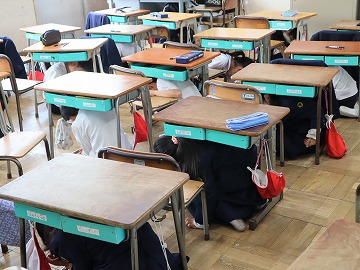 地震発生時の避難訓練を行いました。
