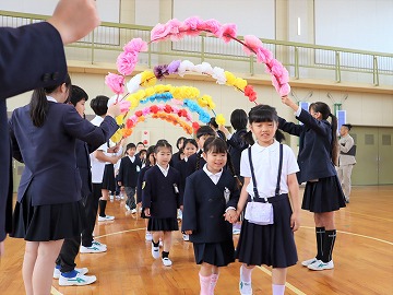2年生が手を引いて入場し、3年生がダンスを披露